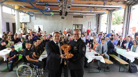 Zuvor hatte Kommandant Thomas Schmollinger das volle Haus begrüßt und diesen besonderen Moment benannt: „Wir sind überaus