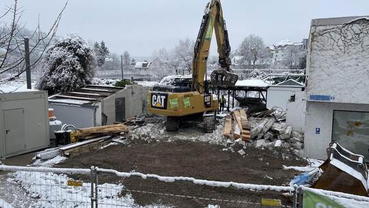 Mühlacker. Inmitten der winterlichen Enzgärten in Mühlacker herrscht derzeit Hochbetrieb: Arbeiter einer Baufirma machen mit einem großen Bagger das Gelände der ehemaligen Gärtnerei Keefer voraussichtlich bis Ende März komplett platt.