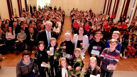 Auf die Besonderheiten, die Menschen in den knapp 60 Schömberger Vereinen erfahren und erleben, ging Bürgermeister Matthias Leyn zuvor auch im Rahmen seiner Begrüßung näher ein. „Unsere Vereine tragen zu einem gesunden Miteinander bei und vermitteln nebenbei ganz besondere Werte wie Zusammenhalt und Rückhalt“, sagte er. Gemeinsam für Ziele zu kämpfen und ein kameradschaftliches Miteinander zu pflegen, sei etwas Besonderes. „Euer Wirken tut uns allen gut“, brachte er es auf den Punkt und erntete dafür großen Applaus der gut 300 Gäste. Leyn warf jedoch auch einen kritischen Blick auf das Thema Vereinsarbeit. Es sei heute nicht mehr selbstverständlich, einen Großteil seiner Freizeit für einen Verein einzusetzen oder gar einen Posten in der Vorstandschaft zu besetzen. Eine Ehrung erfuhren die zahlreichen Sportler nicht nur durch die öffentliche Auszeichnung, sondern auch durch eine kleine finanzielle Anerkennung, deren Höhe jedoch nicht verraten wurde.