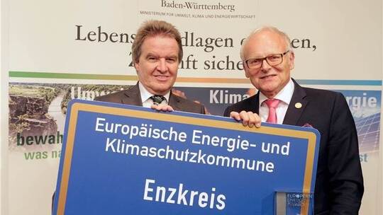 Ausgezeichnet“ – so fühlte sich Karl Röckinger am Dienstagabend bei der Verleihung des European Energy Awards in der Stadthalle im Kloster Maulbronn. Kein Wunder. Schließlich durfte der Landrat bereits zum zweiten Mal den Award in Gold entgegennehmen und damit gilt der Enzkreis zu den Vorzeigekreisen in Sachen Klimaschutz. „Unsere Vorgabe lautet: Wir wollen 2050 klimaneutral sein“, erklärte Röckinger, der einen Vortrag über die Maßnahmen im Enzkreis halten durfte.