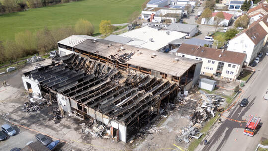 Explodierende Gasflaschen, einstürzende Gebäudeteile: Lagerhalle in Lomersheim völlig ausgebrannt