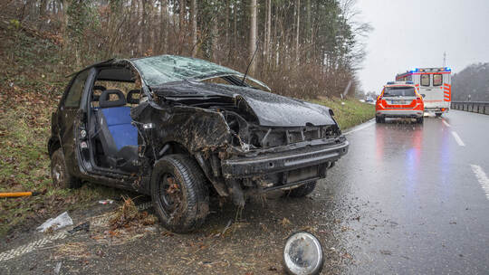 Königsbach-Stein. Ein Auto hat sich auf der L611 zwischen Königsbach-Stein und Bauschlott überschlagen. Zwei Menschen wurden dabei schwer verletzt, beide mussten von der Feuerwehr aus dem Fahrzeug gerettet werden.
