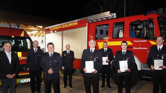 Kieselbronn. Leistungsstark, gut ausgebildet und immer einsatzbereit: So beschreibt Heiko Faber die freiwillige Feuerwehr Kieselbronn. Der Bürgermeister ist nicht der einzige, der voll des Lobes ist, als sich die Kameraden am Freitag zu einem Ehrungs- und Beförderungsabend treffen. „Die Feuerwehr lebt von langjährigen Mitgliedschaften“, betont Kreisbrandmeister Carsten Sorg, bevor er Urkunden und Ehrenzeichen überreich.