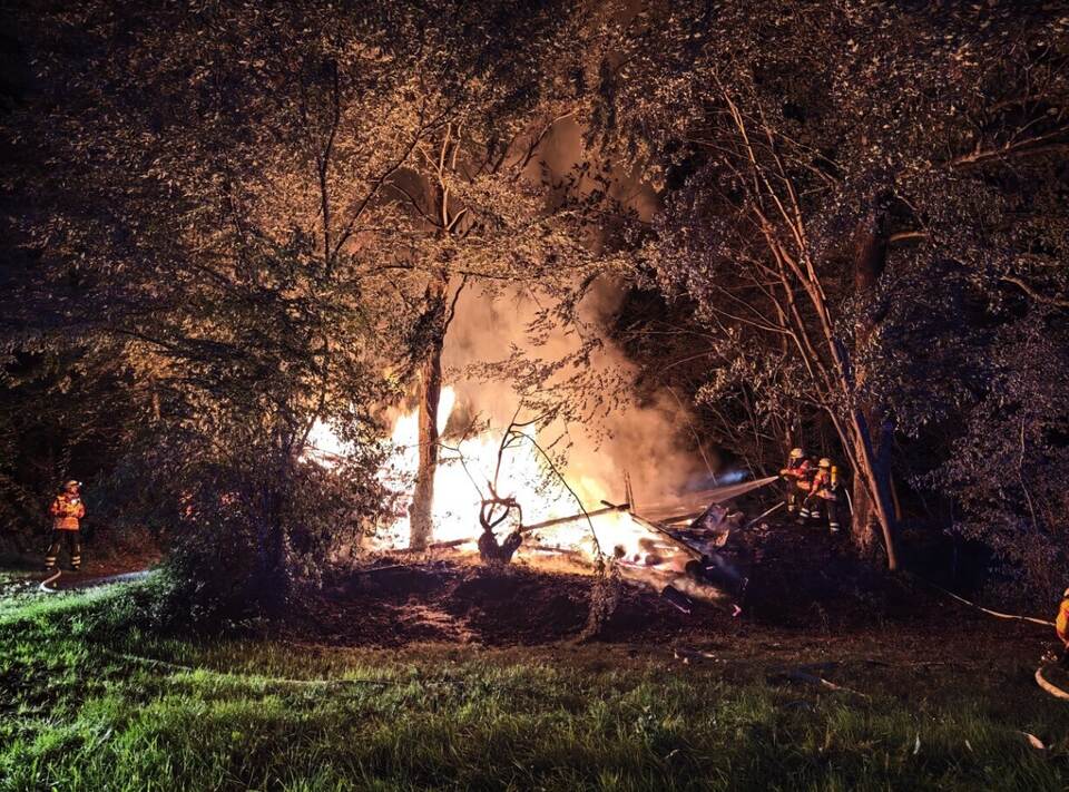 Die Feuerwehr Engelsbrand rückte demnach um 23.46 Uhr mit allen verfügbaren Fahrzeugen zur Friedenstraße in den Engelsbrander Ortsteil Grunbach aus. „Vor Ort kämpften wir zunächst mit Problemen bei der Wasserversorgung“, so die Wehrleute. Als die Wasserversorgung durch ein Tanklöschfahrzeug sowie ein weiteres Löschfahrzeug in kürzester Zeit sichergestellt war, konnten die Einsatzkräfte den Brand effektiv bekämpfen. Nach Angaben des Engelsbrander Kommandanten Kevin Nigbur brannten rund 50 Quadratmeter Fläche. Laut Huber standen außerdem zwei Anhänger in Flammen, die vermutlich zum Transport von Holz dort bereitstanden.