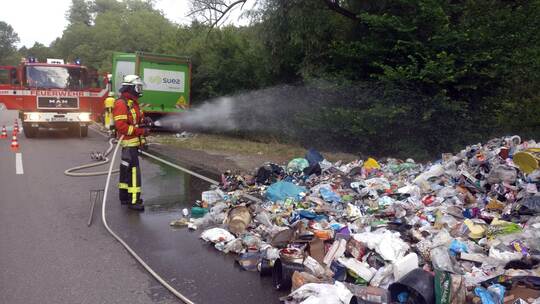 Keltern. Glasflaschen, Konservengläser, Dosen, Kunststoffbecher und -flaschen, Verbundverpackungen von Milch und Saft sowie alle Arten von Metallverpackungen gelten im Enzkreis als Abfallart "rund". Dieser „runde“ Abfall ist am Freitag in einem Müllfahrzeug in Brand geraten, nachdem die grünen Tonnen in Dietlingen geleert worden waren.