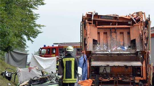 Müllwagen und Unglücksfahrzeug werden nach Todesfahrt untersucht