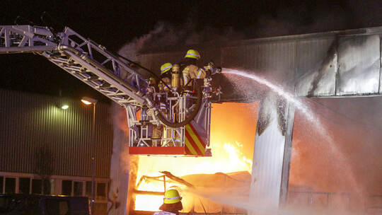 Eindeutig klar ist bislang, dass die Einsatzkräfte gegen 1.20 Uhr alarmiert werden. Die Flammen breiten sich rasend schnell aus und die Fabrik für Lithium-Ionen-Akkus steht in kürzester Zeit im Vollbrand. Schnell zeigt sich, dass der Großeinsatz viele Kräfte binden wird: Die Drehleitern aus Mühlacker und Knittlingen werden angefordert.
