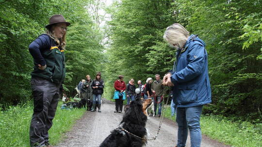 Ein informativer Waldspaziergang mit Försterin Sofie Bloß zeigt, dass mit etwas Wissen zu heimischen Wildtieren und Verhaltensregeln im Tann ein tolles wie kurzweiliges Miteinander von Mensch und Vierbeinern möglich ist. So helfen Suchspiele, dass keine Langeweile aufkommt. Außerdem erklärt die Fachfrau, worauf man achten muss, wenn man auf Wildtiere trifft – sowohl auf lebendige, als auch auf verendete Exemplare.