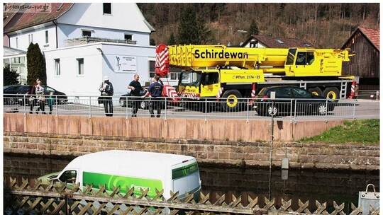 Um es bergen zu können, war der Einsatz eines Krans notwendig. Zudem musste ein Taucher der Feuerwehr vorher noch die Kranseile am Lieferwagen befestigen. Glücklicherweise entstand am Fahrzeug selbst kein allzu großer Schaden. Inwiefern die Fracht durch Wasserschaden beeinträchtigt ist, muss noch geklärt werden. pol