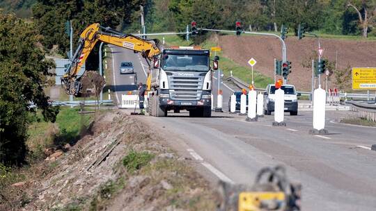 Illingen. Auf der B35 im Bereich der Bahnbrücke bei Illingen haben die Bauarbeiten begonnen. Derzeit wird das Gelände mit einem Bagger vorbereitet, damit anschließend Betonbausteine eingebaut werden können, die das abschüssige Gelände am Fahrbahnrand besser sichern. Für die Arbeiten muss die B35 in diesem Bereich für rund sieben Wochen halbseitig gesperrt werden, wie das Regierungspräsidium in Karlsruhe bekannt gegeben hat.
