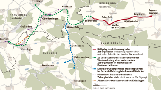 Enzkreis/Sternenfels/Knittlingen/Oberderdingen. Vor rund drei Jahren machte in den nordöstlich am oder im Enzkreis gelegenen Kommunen die frohe Kunde die Runde, dass die stillgelegte Zabergäubahn eventuell wiederbelebt werden könnte. Die Hoffnung, dass dadurch wesentliche infrastrukturelle Verbesserungen winken, hatte seinerzeit eine Studie der Landesregierung geweckt, wonach über 40 stillgelegte Bahnstrecken in Baden-Württemberg untersucht wurden, von denen etliche mit finanzieller Unterstützung des Verkehrsministeriums reaktiviert werden sollen. Von einer Erweiterung der Zabergäubahn von Zaberfeld nach Bretten würden die betroffenen Kommunen enorm profitieren.