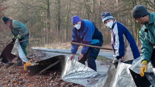 Mühlacker. Privatem ehrenamtlichen Engagement ist die Krötenschutzaktion an der Landstraße zwischen Mühlacker und Lienzingen zu verdanken. Unterstützt von der sozialen Einrichtung GSI wurden am Donnerstag die Zäune aufgestellt. Seit 2018 organisiert Gabi Hofmann aus Mühlacker die Aktion und wird dabei unter anderem von Heidi und Gerd Riehm aus Lienzingen unterstützt. Unabhängig voneinander sahen sie wegen der Vielzahl überfahrener Kröten, Frösche und Lurche Handlungsbedarf. „Ich verfolge die Situation der Amphibien hier seit meiner Kindheit“, so Gabi Hofmann, die im Eckenweiher wohnt.