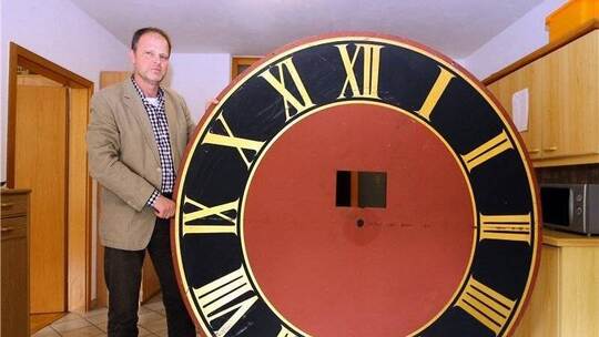 Altes Ziffernblatt der evangelischen Kirche in Höfen geklaut. Kirchen-Diebstähle sind in der Region leider kein Einzelfall.