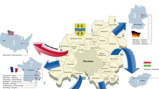 Ursprünge: Um zu ihren Freunden zu kommen, könnten einige Gemeinden eine Fahrgemeinschaft bilden. So gibt es eine Häufung von Partnergemeinden im Altenburger Land in Thüringen und in der norditalienischen Reggio Emilia. Der Grund: Die Reggio Emilia ist seit 1993 Partnerregion des Enzkreises und etliche Gemeinden von dort haben übers hiesige Landratsamt direkte Partnerschaft gesucht. Beispiele dafür sind Neulingen – Rubiera oder Eisingen – San Polo d’Enza. Die Geschichte der Waldenser, die einst aus den französisch-italienischen Seealpen ausgewandert sind und sich im Enzkreis angesiedelt haben, verbindet Wurmberg und Queyras, Ötisheim und Mérindol sowie Wiernsheim und Pinasca. Über Gastarbeiter, die in den 1960er-Jahren in den Enzkreis kamen, entstanden zahlreiche Kontakte zu deren Heimatgemeinden. Zum Beispiel von Ispringen nach Castelnuovo Cilento bei Neapel oder von Remchingen nach San Biagio Platani auf Sizilien.
