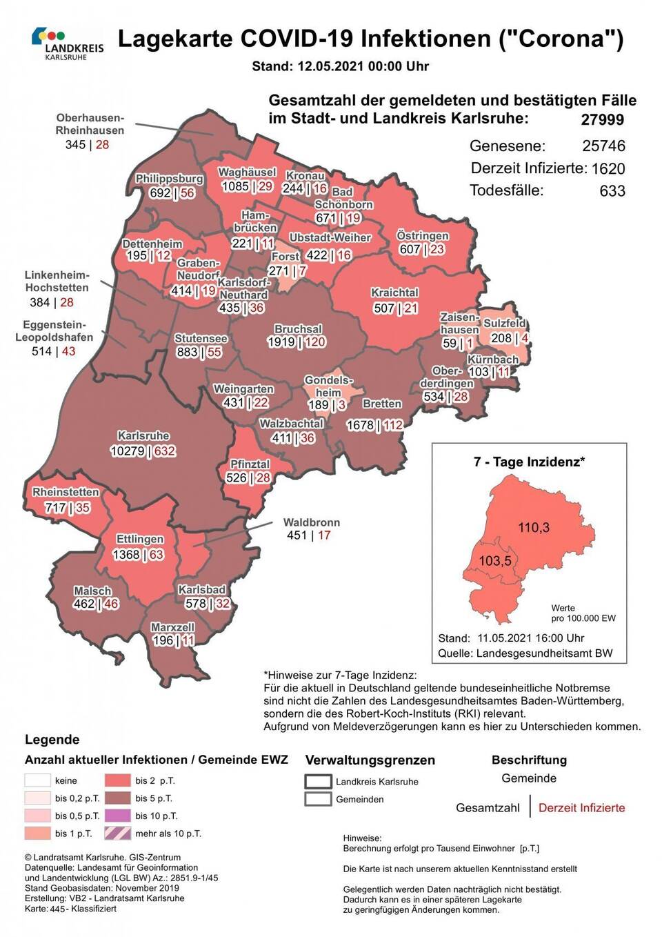 Die Lage im Stadt- und Landkreis Karlsruhe bleibt weitestgehend stabil. Während man im Stadtgebiet bei einer Inzidenz von 103,5 steht, liegt dieser Wert im Landkreis bei 110,3 und damit weit unter den Werten in der PZ-Region.