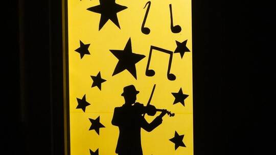 Kämpfelbach. Auf dem leuchtenden gelben Hintergrund fällt der Musiker sofort ins Auge. Umgeben von funkelnden Sternen, brennenden Kerzen und großen Noten, spielt er seine Geige. Aus schwarzem Karton ausgeschnitten, steht er im Mittelpunkt des Bilds, das die katholische junge Gemeinde (KjG) auf einer Glastür realisiert und am Montagabend feierlich enthüllt hat: mit gemeinsam gesungenen Liedern, einer kurzen Andacht und einer Geschichte. Es ist in diesem Jahr das erste Motiv des lebendigen Adventskalenders, den die katholische Kirche in Bilfingen zusammen mit engagierten Familien, Vereinen und Organisationen ausrichtet.