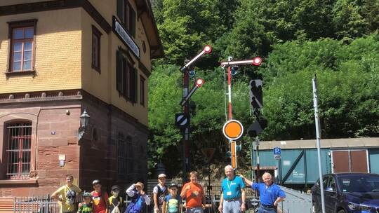 In Pforzheim-Brötzingen gab es mit der "Königskurve" früher eine ähnliche Verbindungskurve, die inzwischen aber abgebaut ist. Angekommen am Bahnhof Weißenstein, wurden die Kinder auf dem Bahnsteig von Rüdiger Baumann, Zweiter Vorsitzender der Eisenbahnfreunde Pforzheim begrüßt und durch das Museum geführt.