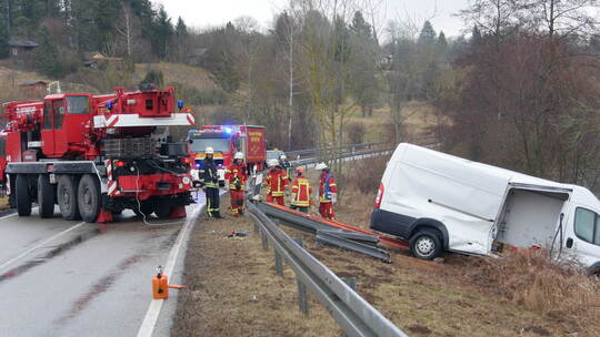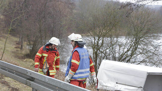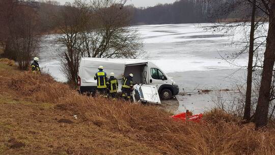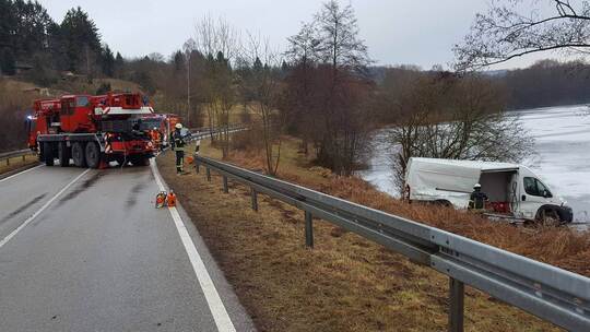 Lieferwagen zunächst zu weit nach rechts und kam dann beim Gegensteuern nach links von der Fahrbahn ab. In der Folge durchbrach er die Leitplanke und blieb schließlich auf dem angrenzenden und zu Eis gefrorenen See stehen.
