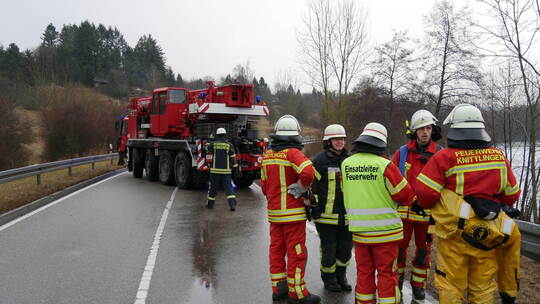 Die Feuerwehr Knittlingen war mit vier Fahrzeugen und 20 Einsatzkräften vor Ort, später erhielten sie Unterstützung durch ihre Pforzheimer Kollegen. Die Kreisstraße war während der Bergungsmaßnahmen voll gesperrt.