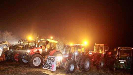 Friolzheim. Rund 20 Traktoren-, 10 Lastkraftwagen-Fahrer und etwa 50 Menschen haben sich laut Auskunft der Polizei am frühen Freitagabend in Friolzheim – unweit der Autobahn – zusammengefunden, um sich an den derzeit laufenden bundesweiten Protestaktionen gegen die Agrarpolitik der Regierung zu beteiligen.