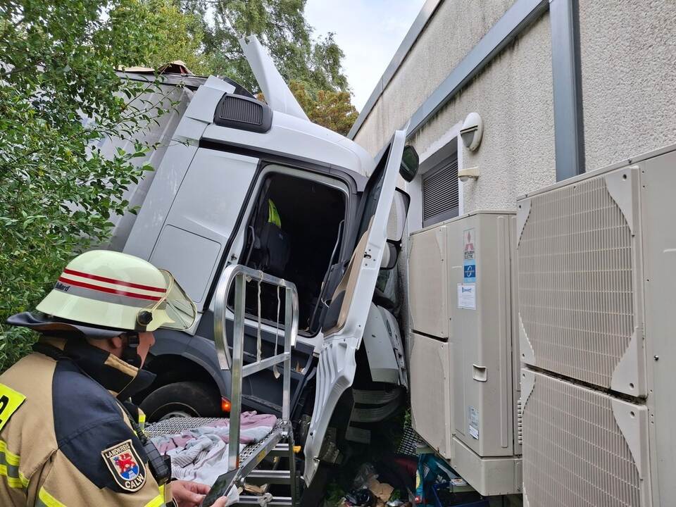 Calw. Ein Lastwagen ist im Calwer Stadtteil Wimberg auf der K 4325 gegen eine Hauswand gefahren. Bei der Kollision sei laut Polizeimitteilung der 61-jährige Fahrer verletzt worden.