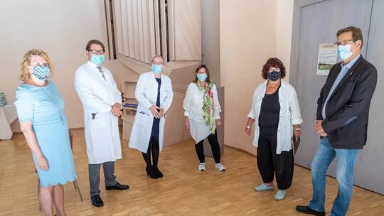 Anschließend ging es zum Rundgang durch den Klinikneubau, der im Frühjahr 2021 fertiggestellt werden soll. Das Projekt, das die Bettenzahl auf 120 etwa verdoppeln soll, wird mit 17,9 Millionen Euro vom Sozialministerium gefördert.