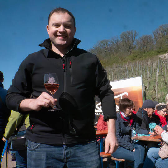 Zufriedene Winzer und zufriedene Gäste beim Diefenbacher Mandelblütenfest