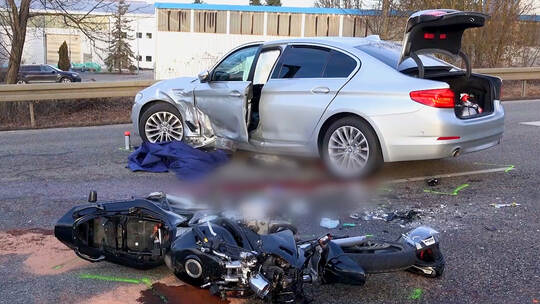 Der 21-Jährige aus dem Enzkreis erlitt durch den Zusammenprall mit dem Auto eines 49-Jährigen aus Pforzheim lebensgefährliche Verletzungen und verstarb noch an der Unfallstelle. Der BMW-Fahrer erlitt durch den Unfall einen Schock.