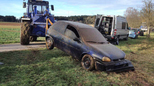 Das Auto aus dem Angelsee zwischen Neuhausen/Steinegg/Hamberg ist geborgen.