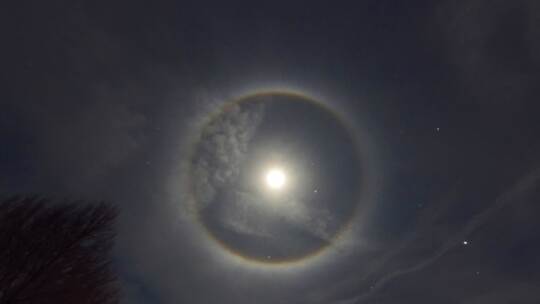 Solch ein Kreis um den Mond nenne sich "Halo", so ein Experte des DWD. Er entstehe, wenn sich das Licht des Mondes in den kleinen Eiskristallen der Wolken breche. Meistens sei nur ein Ring zu sehen, aber möglich wären noch ganz andere Erscheinungen. So könne es auch einen zweiten, größeren Ring in doppelter Entfernung zum Mond wie den ersten Ring geben. Auch Berührungsbögen – also Bögen, die den Halo berühren – könnte man manchmal beobachten. Ein anderer Effekt, der auf auftreten könnte, sei der Mondhof. Dabei wird das Licht gebeugt und es entstehe ebenfalls ein Kreis um den Mond.