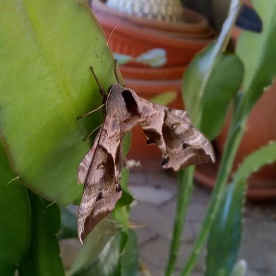 Doch siehe da: Die Expertise traf bei einer Reihe von Lesern auf Widerspruch. Es handele sich weder um eine Achateule, noch um ein Nachtpfauenauge, sondern vielmehr um ein Abendpfauenauge. Dessen wissenschaftlicher Name lautet Smerinthus ocellata. Es ist ein Nachtfalter aus der Familie der Schwärmer (Sphingidae). Die Falter erreichen eine Flügelspannweite von 70 bis 80 Millimetern. Ihre Vorderflügel sind in hellen und dunklen Brauntönen gezeichnet und sehen der Färbung von Rinde ähnlich. Am Außenrand sind sie leicht ausgebuchtet und abgestutzt.