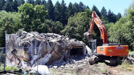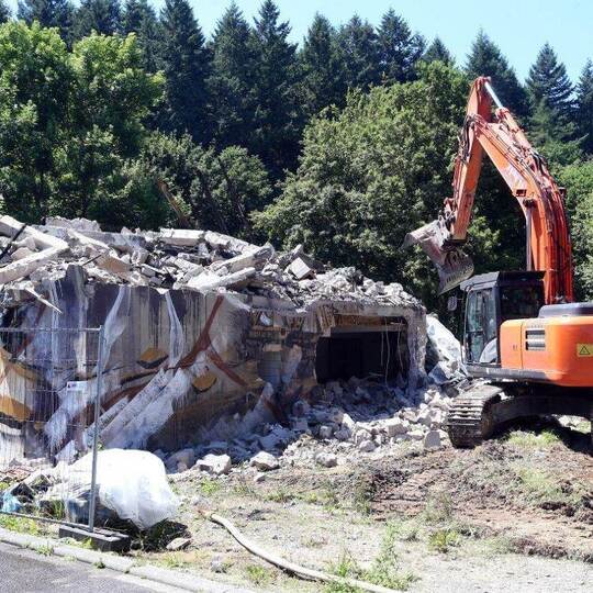 Nach dem Brandanschlag auf die geplante Asylunterkunft in Singen, wird das Gebäude nun abgerissen.