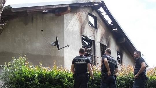 Zwei Tage nach dem Brand in einem geplanten Asylbewerberheim in Remchingen-Singen laufen die Ermittlungen auf Hochtouren.
