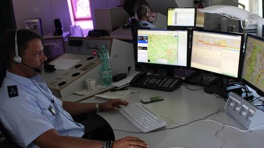 Sie arbeiten intensiv und schnell. Im Fall der hilflosen Person schickt der Beamte alle Zeugeninformationen an eine Streifenwagenbesatzung. Kurz darauf bestätigt die Streife den Auftrag und fährt los. Auf der Karte am Funktisch sieht man, wo sich der Wagen befindet. Zur Not kann der Leitstellenbeamte ihn zum Unfall dirigieren. Genauso wie den Rettungswagen, der auf dem Weg ist.