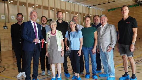 Königsbach-Stein. Es wird getanzt und gespielt, gegessen und getrunken: Mit Unterhaltungsprogramm, Bewirtung und vielen lobenden Worten hat die Gemeinde Königsbach-Stein am Samstag die neue Sporthalle eingeweiht, die in den vergangenen Monaten auf dem Gelände der Steiner Heynlinschule entstanden ist. Unzählige Gäste sind auf den Wannenberg gekommen, um sich einen Eindruck von dem Bauwerk zu verschaffen, das mit 7,6 Millionen Euro zu den größten Investitionen zählt, die die Gemeinde seit ihrem Bestehen getätigt hat. Bürgermeister Heiko Genthner bezeichnet es als „Schmuckstück“. Er erinnert an den Start im Mai 2019, als der Gemeinderat einstimmig entschied, die aus den 1970er-Jahren stammende Halle durch einen Neubau zu ersetzen.
