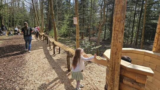 Neue Holzkugelbahn beim Barfußpfad in Tiefenbronn begeistert Jung und Alt