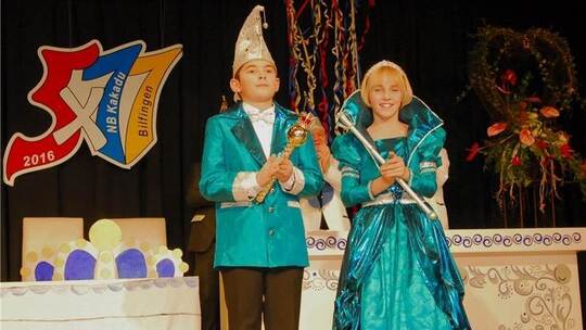 Wie findet man eine echte Prinzessin, fragten sich Kristina Binder, Saskia Ohnmacht und Christian Altmann in ihrem Sketch. Ganz einfach, indem man die Bewerberinnen nach Art der „Prinzessin auf der Erbse“ auf ihre Feinfühligkeit testet. Im wahren Leben, das weiß man beim Narrenbund, kann man natürlich nicht erst in der Prunksitzung nach den neuen Hoheiten Ausschau halten. Und so konnte der „Kakadu“ sein neues Kinderprinzenpaar für die Kampagne 2016 inthronisieren. Die jungen Bilfinger Narren werden regiert von Prinzessin Milena I. (Fritz) und von Prinz Jannis I. (Göhringer). Beide sind zehn Jahre alt und besuchen die fünfte Klasse.