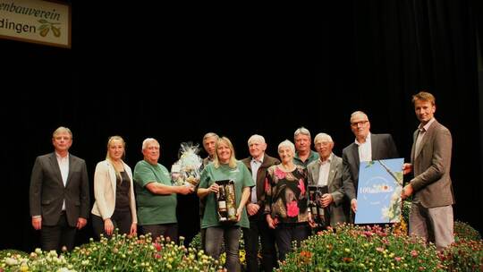 Im prächtig blühenden Chrysanthemen-Meer – in dem am Vorabend noch der OGV-Kreisverband seinen 100. Geburtstag gefeiert hatte –