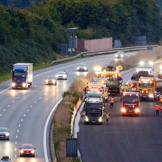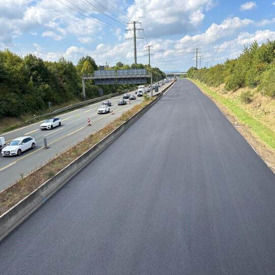 Am Sonntagmorgen zeigt sich gesperrte A8 bereits mit der neuen Asphaltdecke.