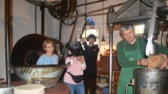 Traditionell bezieht die Ölmühle Illingen den Großteil ihrer Rohstoffe aus der Region. Im vergangenen Jahr noch waren die Walnüsse Mangelware gewesen. Dieses Jahr hingen die Bäume voll, so Krauth. Die Ernte im Oktober nahmen die Fernsehmacher zum Anlass, sich dem Thema Nüsse und Esskastanien zu widmen. Denn Nüsse sind voller wertvoller Nährstoffe, wie am kommenden Dienstag, 21. Oktober, ab 20.15 Uhr in der Sendung zu erfahren sein wird. Einblicke in die Produktion gibt es auch am kommenden Wochenende. Am Sonntag, 19. Oktober, ist in der Ölmühle „Tag der offenen Tür“.