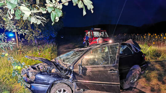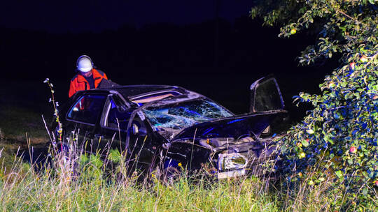 Zwei Männer überschlagen sich mit nicht zugelassenem Auto und prallen gegen Baum