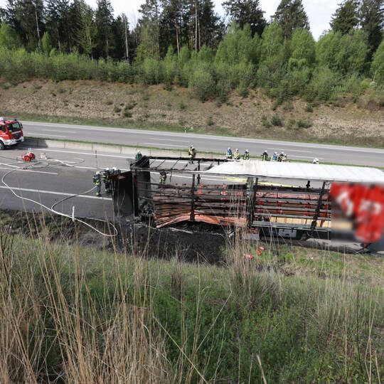 Auf A8 bei Wimsheim: Lastwagen-Anhänger komplett ausgebrannt