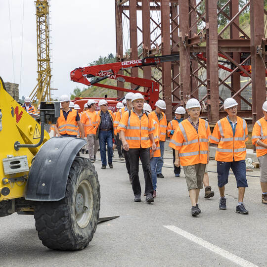 PZ-news-Leser auf der Baustelle: Da staunten die PZ-news-Leser, als sie im Büro der Autobahn-Gesellschaft Südwest im Pforzheimer Stadtteil Eutingen aus erster Hand erfuhren, was auf der größten Baustelle in der Region läuft. Zurzeit passiere richtig viel beim sechsspurigen Ausbau der A8 im Enztal zwischen Eutingen, Kieselbronn und Niefern-Öschelbronn, schilderten Projektleiter Christian Hauck und Tobias Jäger, der Verantwortliche für Kommunikation der Außenstelle Karlsruhe, der Lesergruppe in ihren Vorträgen.