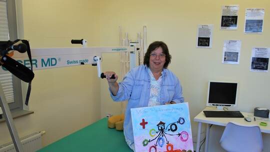 Die therapeutischen Ansätze sind vielfältig und reichen vom Balancetraining an der Wii-Konsole bis zur Akupressur-Haube für zu Hause, die sie bei Bedarf per Video-Sprechstunde überwacht. Während Parkinson-Patienten in ihrem Gesundheitswerkraum neuerdings auf einem Giger-Trainingsgerät Koordination, Muskelkraft und Ausdauer schulen und den Erfolg per Computeraufzeichnung beobachten können, hält sie für begleitende Angehörige eine pulsierende Matte zur Durchblutungsförderung und Entspannung bereit. In seltenen Fällen ließe sich der Verlauf der tückischen neurologischen Erkrankung verbessern, in vielen Fällen merklich verlangsamen: „Wir wollen vor allem die Lebensfreude und Lebensqualität verbessern.“ zac