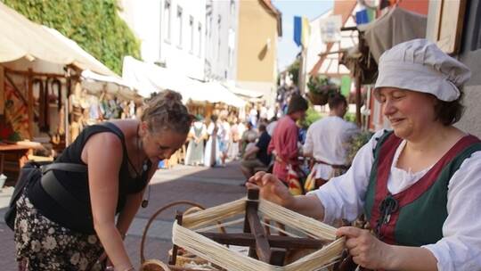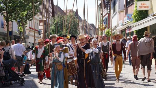 Das Rad der Zeit dreht sich – und bleibt im Jahr 1504 stehen. In jener Zeit, in der Bretten in Folge des Landshuter Erbfolgekriegs von württembergischen Gruppen angegriffen und belagert wurde. Bretten verwandelte sich beim Peter-und-Paul-Fest am Wochenende vier Tage lang in eine spätmittelalterliche Stadt mit Gauklern, Soldaten, Spielmännern, Händlern und Handwerkern.