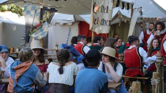 „Alles selbst geschneidert“, sagt sie und erzählt, sie würden gleich mehrere Gewänder besitzen. Denn die beiden sind öfter auf Mittelalter-Festen unterwegs. Aufs Peter-und-Paul-Fest sind sie zum ersten Mal gekommen – mit dem Wohnmobil aus der Lüneburger Heide. Ihnen gefallen die Atmosphäre und der Umstand, dass die ganze Stadt mitmacht. „Das ist fast wie ein Nachbarschaftsfest.“