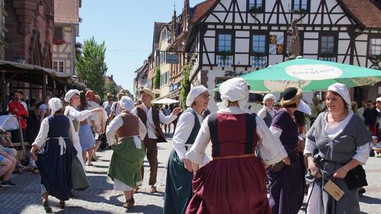 Bretten. Gaukler treiben ihre Späße, Landsknechte und Ritter ziehen durch die Gassen, und Handwerker bieten ihre Waren feil: Das Rad der Zeit dreht sich zurück und bleibt stehen im Jahr 1504. Vier Tage lang verwandelt sich Bretten beim Peter-und-Paul-Fest in eine spätmittelalterliche Stadt. Tausende Besucher sind auf den Straßen unterwegs. Auch Katharina und Harald Bergmeier. In historischen Gewändern schreiten sie durch die Altstadt.