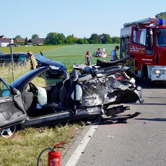 Ein Auto kam laut Polizei am Sonntag in Bad Ditzenbach von der Straße ab, prallte gegen einen Baum und überschlug sich mehrfach. Die vier Insassen im Alter zwischen 20 und 50 Jahren kamen mit schweren Verletzungen ins Krankenhaus.