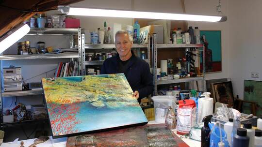 Roland Haag bringt mit Kunstausstellung „Struktur und Emotion“ Farbe ins Remchinger Rathaus