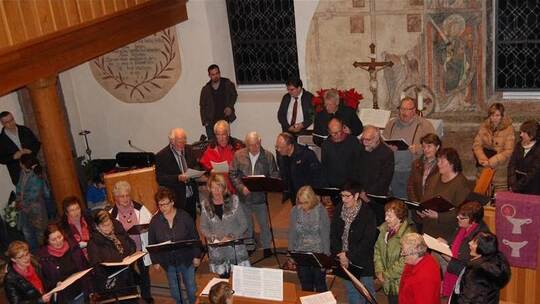 Vom „Schneemann“, der verzweifelt vor dem Haus steht und denkt, er habe Übergewicht, sangen die 16 Kinder des Kinderchors sowie der Kinderkirche. Unter ihnen vier Flüchtlingskinder aus Syrien, dem Irak und Palästina. Auffallend, wie diese Grundschulkinder, die erst vor zwei Monaten in den Chor integriert wurden, bereits jeden Refrain problemlos darboten. Pfarrer Mathias Kraft deutete als „Diener des Hausherren“ die Veranstaltung zu einem Bild. Wie früher Transparente von einer brennenden Kerze erleuchtet wurden, so sollten die Menschen in dieser besonderen Zeit „durchlässig werden für Gottes Licht“. „Dieses Licht scheint durch, wenn wir uns anderen Menschen zuwenden“, so Kraft und verwies auf Arme, Einsame und Heimatlose. Mit „Süßer die Glocken nie klingen“ oder „Leise rieselt der Schnee“ waren jetzt auch die Zuhörer zum Singen eingeladen. Und zwar gemeinsam mit den 30 Sängerinnen und Sängern des vierstimmigen, gemischten Chors.